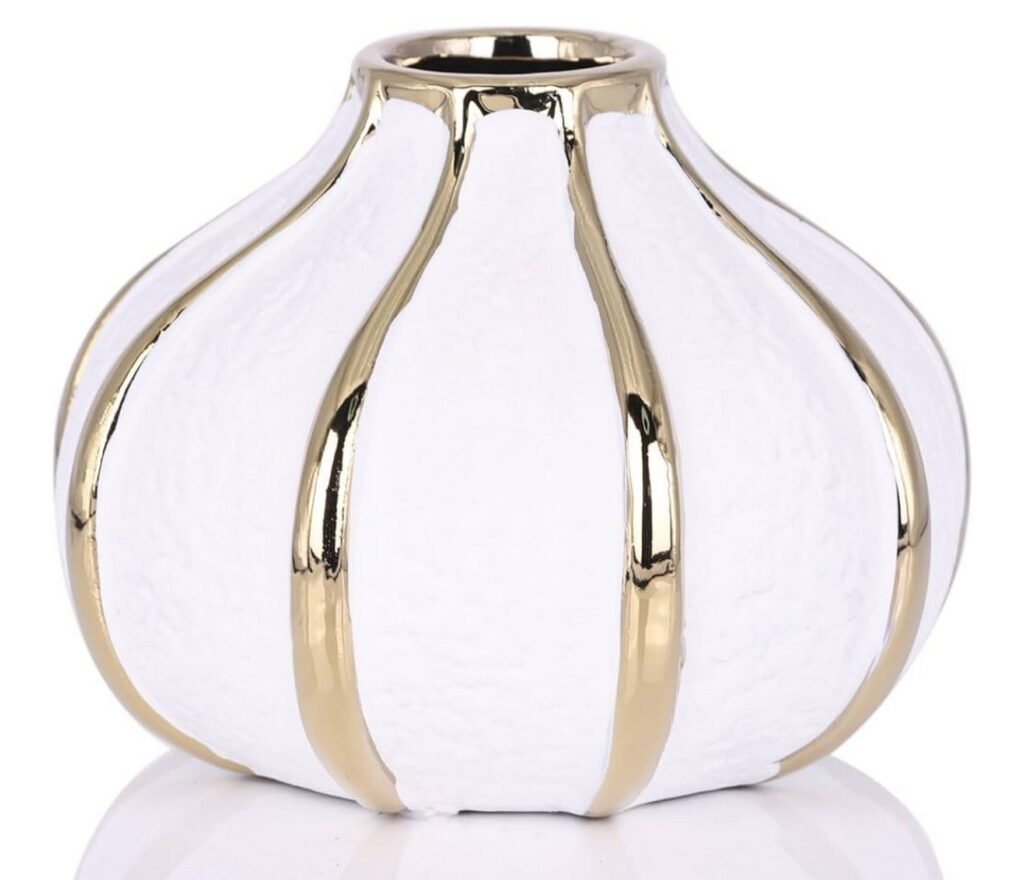 Round gold and white vase $27